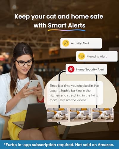 PEACE OF MIND AT HOME: Designed to watch over your pet, Furbo Nanny sends real-time alerts and smart insights, plus includes 3–7 days of video history so you can review what you missed. With continuous feature updates, it evolves to better understand your pet. (Important: This camera requires a paid subscription to Furbo Nanny.)
