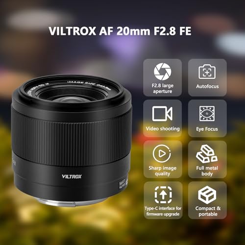 VILTROX 20mm F2.8 FE Full Frame Lens, Wide Angle Autofocus Prime Lens for Sony E Mount Camera ZV-E1 ZV-E10 FX30 A7III A7RV A7IV A7C A7CR A7CII A6400 A6100 A6000